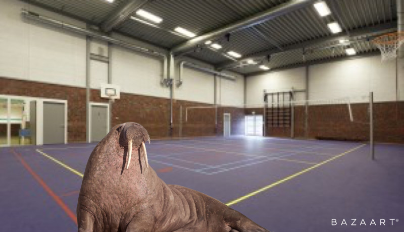 deze walrus is aan het volleyballen met niemand wie wil zijn vriend zijn walrus in gym